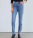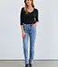 Suzanne’s signature straight-leg fit meets statement style with reversed denim fray detailing down..