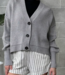 RD Style  Long Sleeve V Neck Cardigan Stone Melange